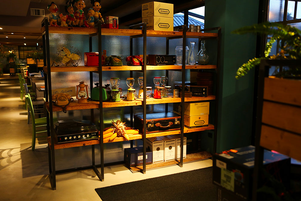 Il locale è caldo e accogliente e l’arredamento, con l’utilizzo del legno e i dettagli vintage, è sapientemente studiato per creare un’atmosfera intima e famigliare. Il lungo bancone mescola elementi presi da un banco birreria con una cassettiera da lavoro e con una catasta di legno da camino. Dietro al bancone è possibile notare la “serra” dedicata allo stoccaggio dei fusti della birra.