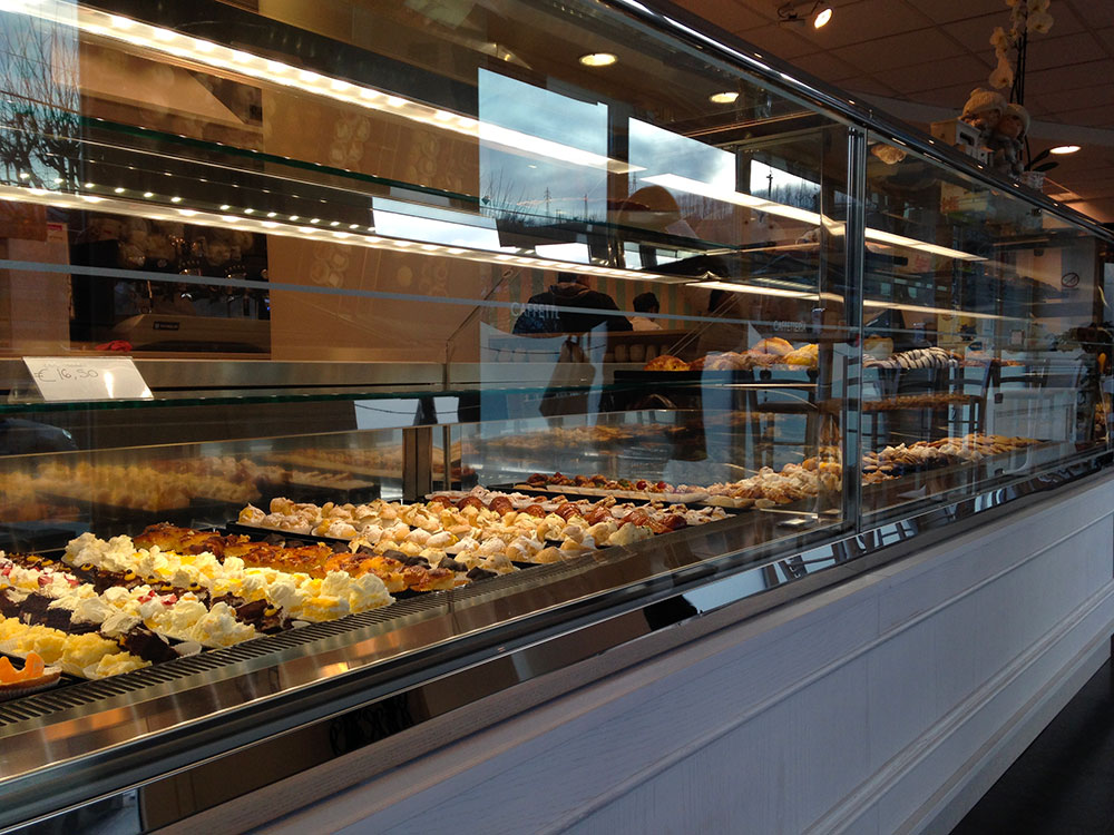 Un locale dal gusto familiare e un po’ romantico caratterizzato dai colori chiari e dalle forme delicate. Il banco ad angolo ha sul lato frontale l’esposizione della pasticcera con una vetrina dotata di 3 piani espositivi, mentre sull’altro lato c’è la zona dedicata alla caffetteria e alle colazioni.